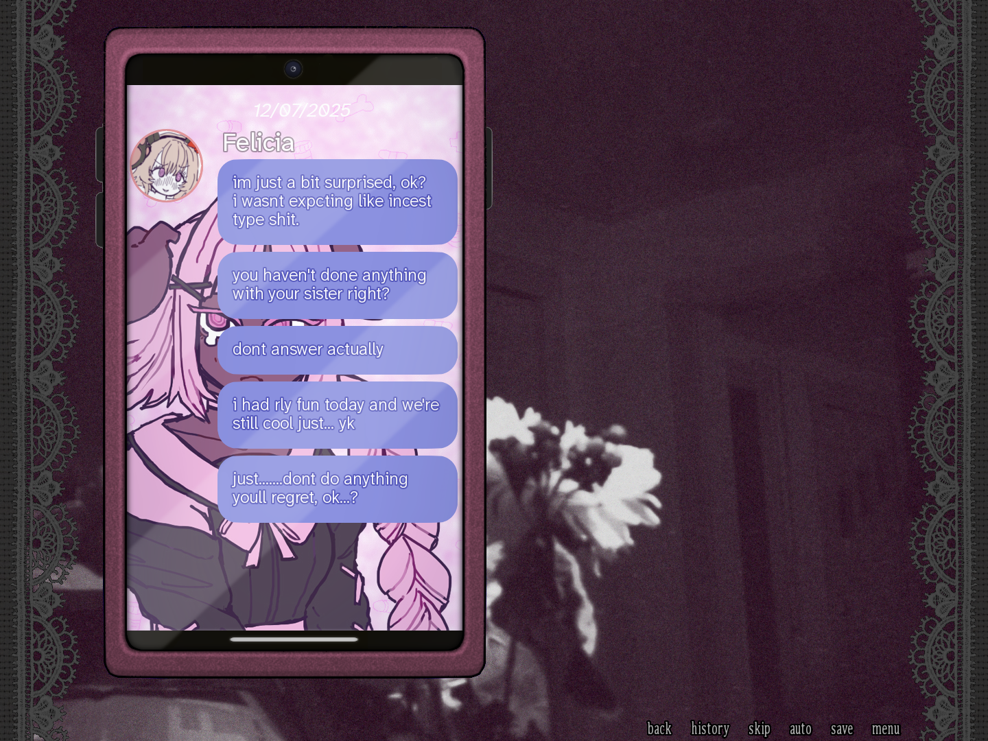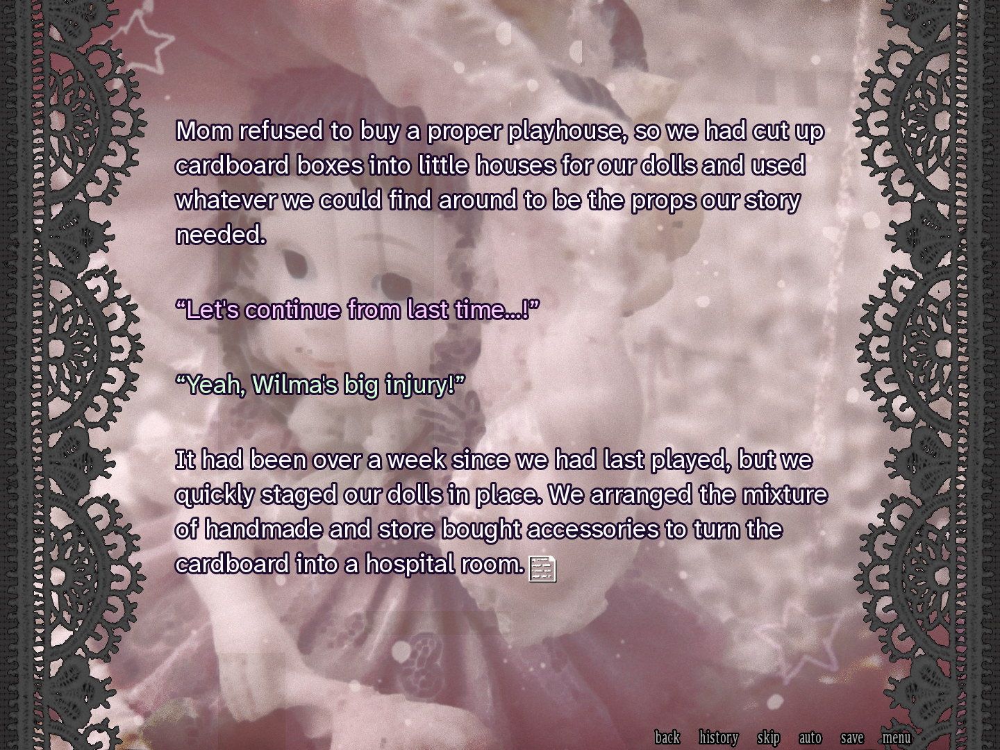 linear visual novel of 20k words about why being a doll and a sister and a girl all means the same thing